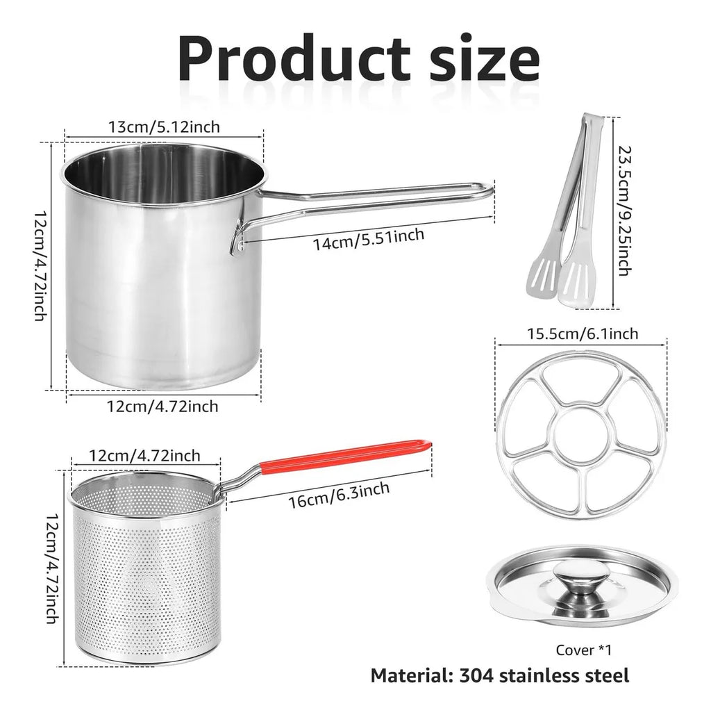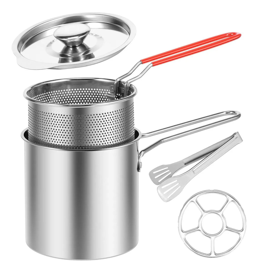- Canasta de acero inoxidable con gancho → sacas las frituras sin quemarte y el aceite escurre perfecto